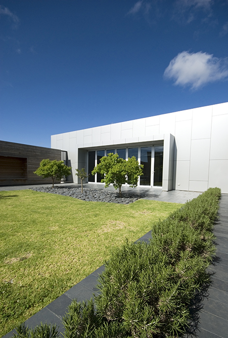 Casa térrea muito moderna para o projeto foi pensado a aplicação de materiais tradicionais como a pedra, bem como materiais mais contemporâneos.